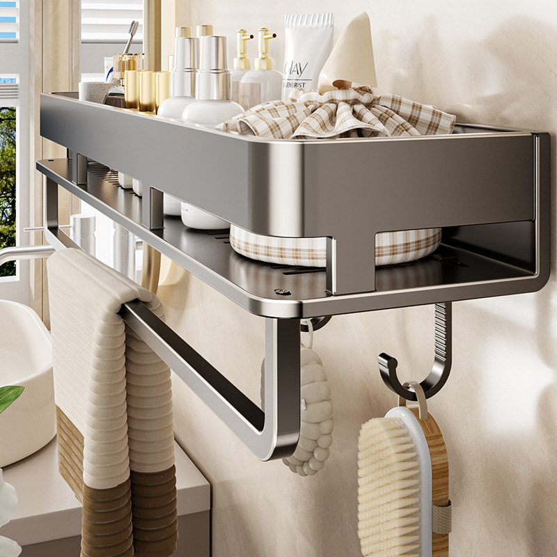 クロスボーダー肥厚バスルーム収納ラックガングレー単層パンチフリートイレシンク回転壁掛け収納ラック