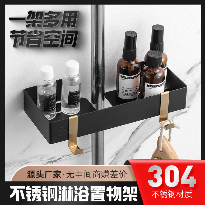 304ステンレスシャワーシェルフ現代シンプル家庭用ホテル浴室透かし彫り排水収納棚フック付き