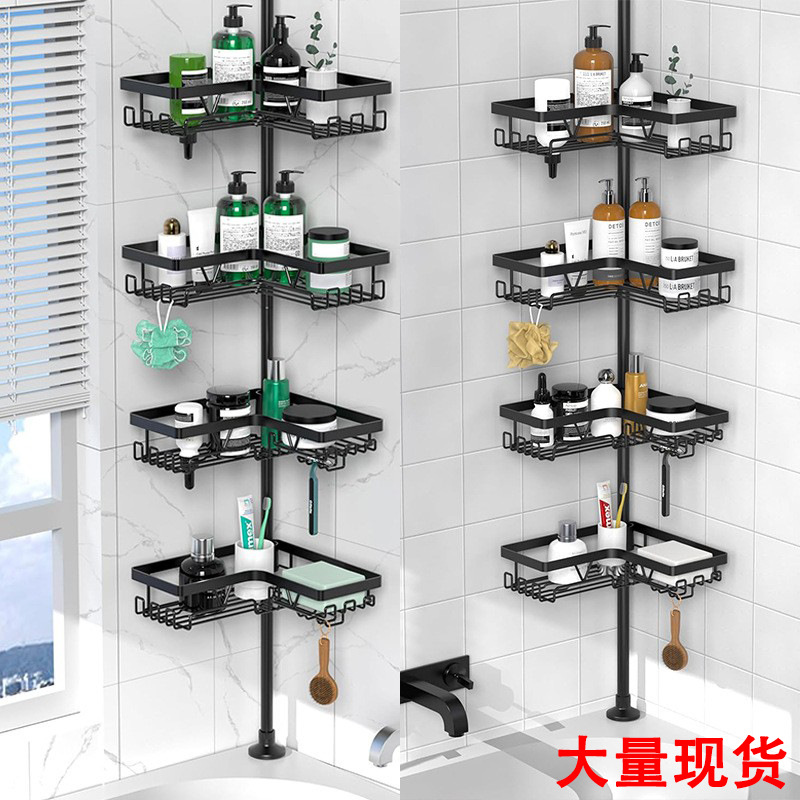 クロスボーダーパンチフリーバスルームバスルーム収納ラック伸縮式三角形スタンドトップ天井から床までのシャワージェル用収納ラック