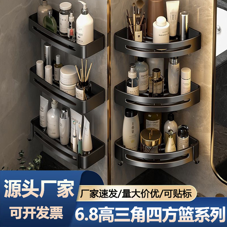バスルーム収納ラック黒厚みのあるスペースアルミニウムパンチフリートライアングルバスケット壁バスルームトイレシャワー壁掛けラック