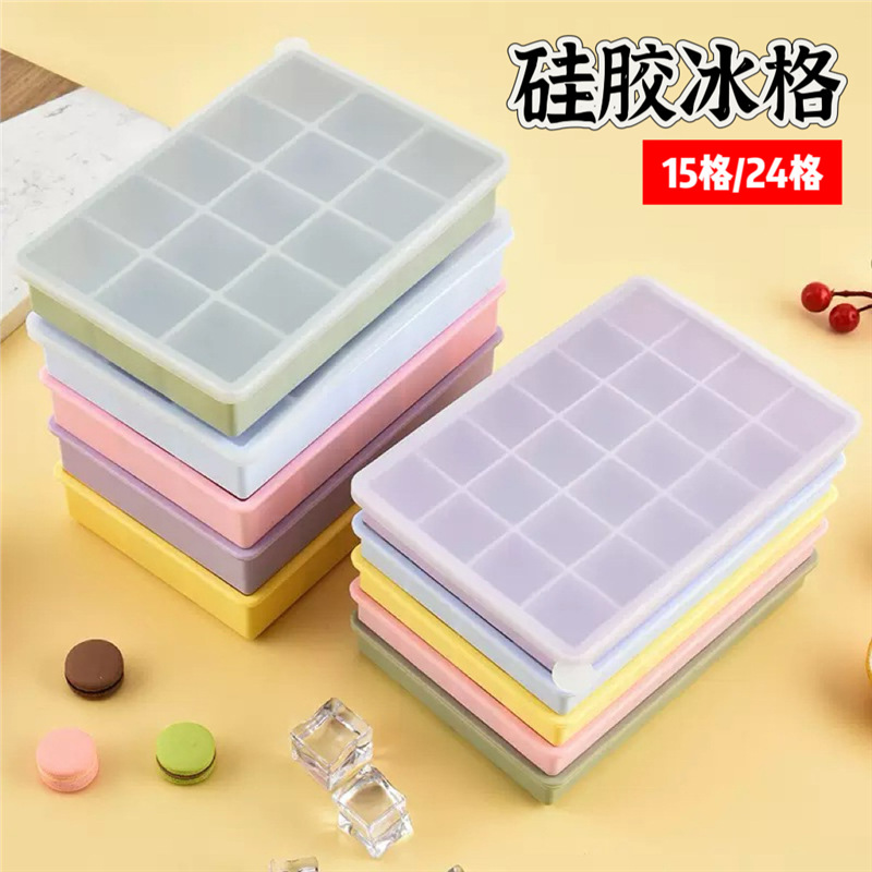 食品級シリカゲル氷格蓋付き金型15格6格製氷箱正方形大格子赤ちゃん補助食冷凍