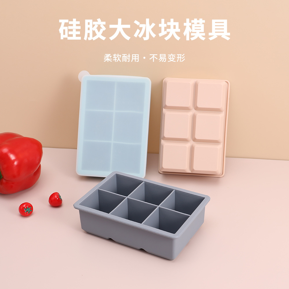 シリコーン製氷皿型 6 グリッドアイスボックス家庭用自家製急速冷凍庫クリエイティブ大型アイスキューブ研削ツール蓋付き