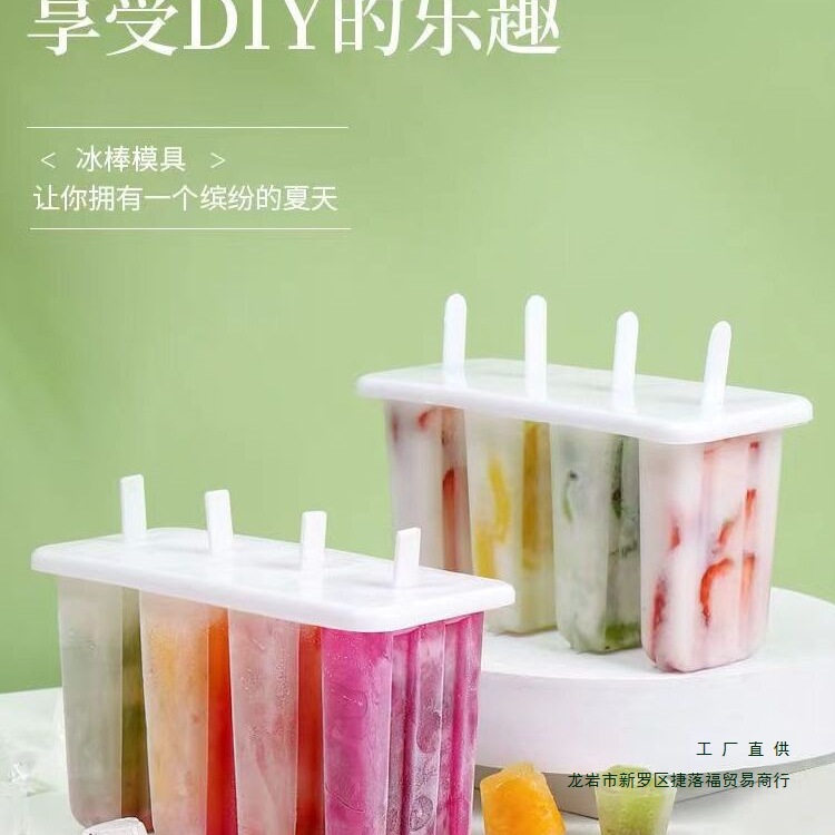 自作棒氷金型diy四格アイスクリーム金型プラスチック蓋付き棒付き多層オーバーレイ氷格