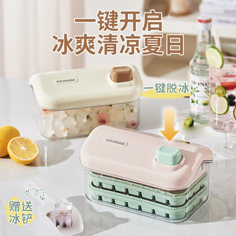 50格100格ワンキー離型氷格貯氷箱押し製氷箱角型氷金型家庭用貯蔵箱