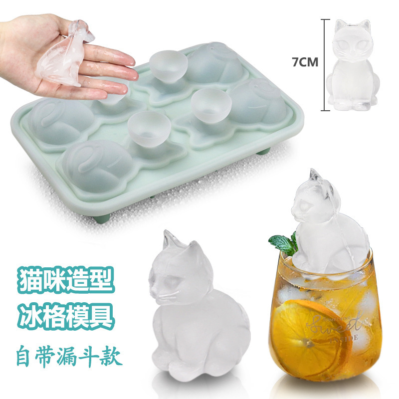 新商品シリコン氷格動物造形食品級製氷金型DIY創意氷金型子猫氷格