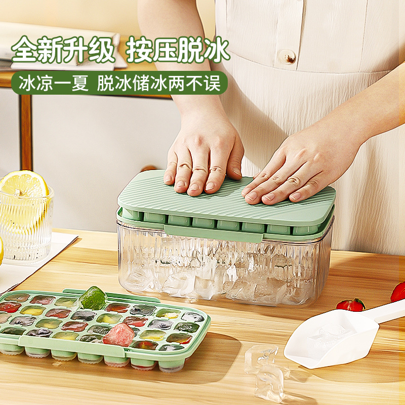新型押し製氷箱単二層角型氷金型蓋付き大容量蓋付き貯氷箱氷格神器