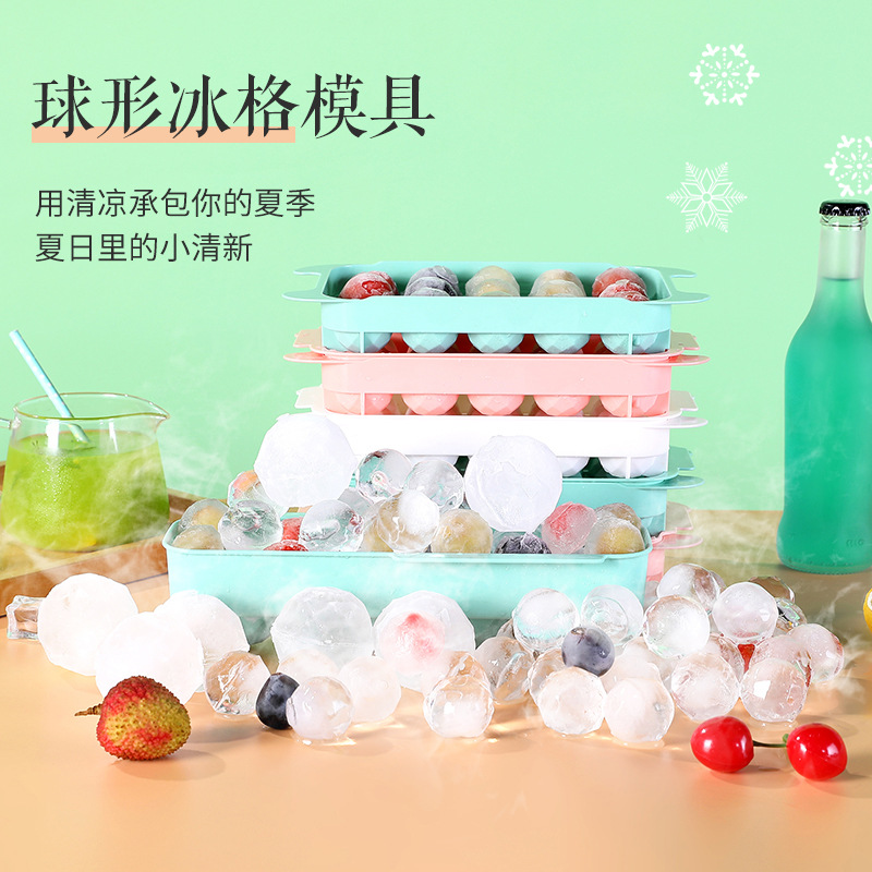 ネット赤食品級シリカゲル氷格球形氷金型家庭用製氷箱蓋付き氷箱卸売り氷粒金型