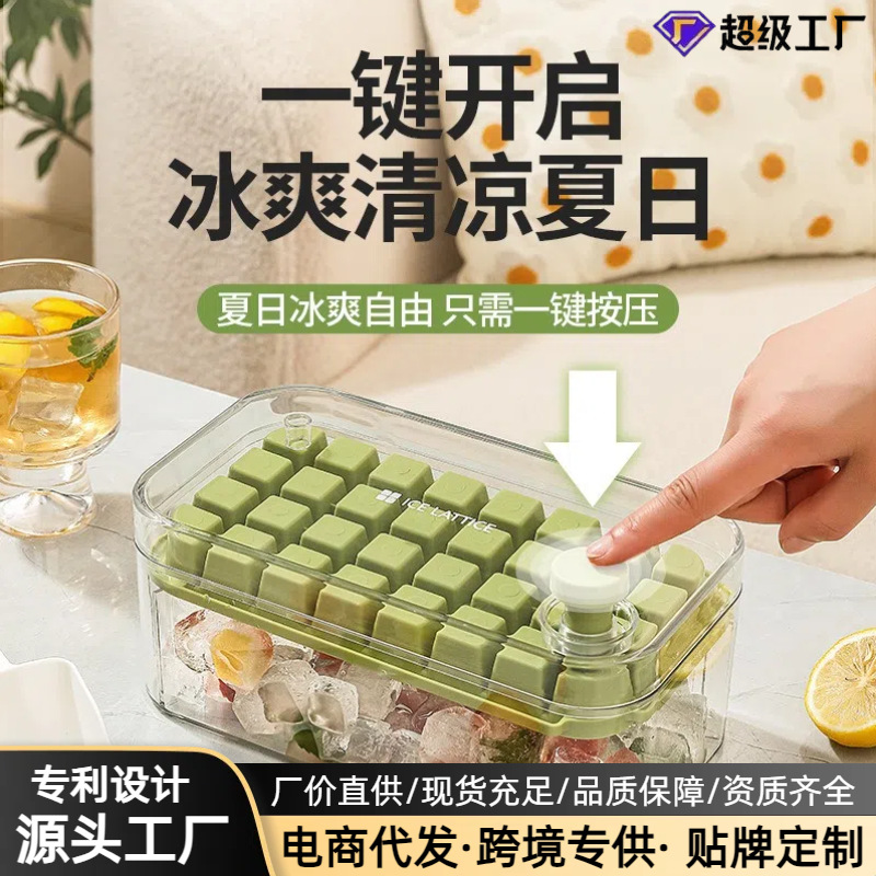 28 グリッドプッシュ式製氷皿クリエイティブライト高級夏必須大容量ワンプレス製氷家庭用氷貯蔵製氷型