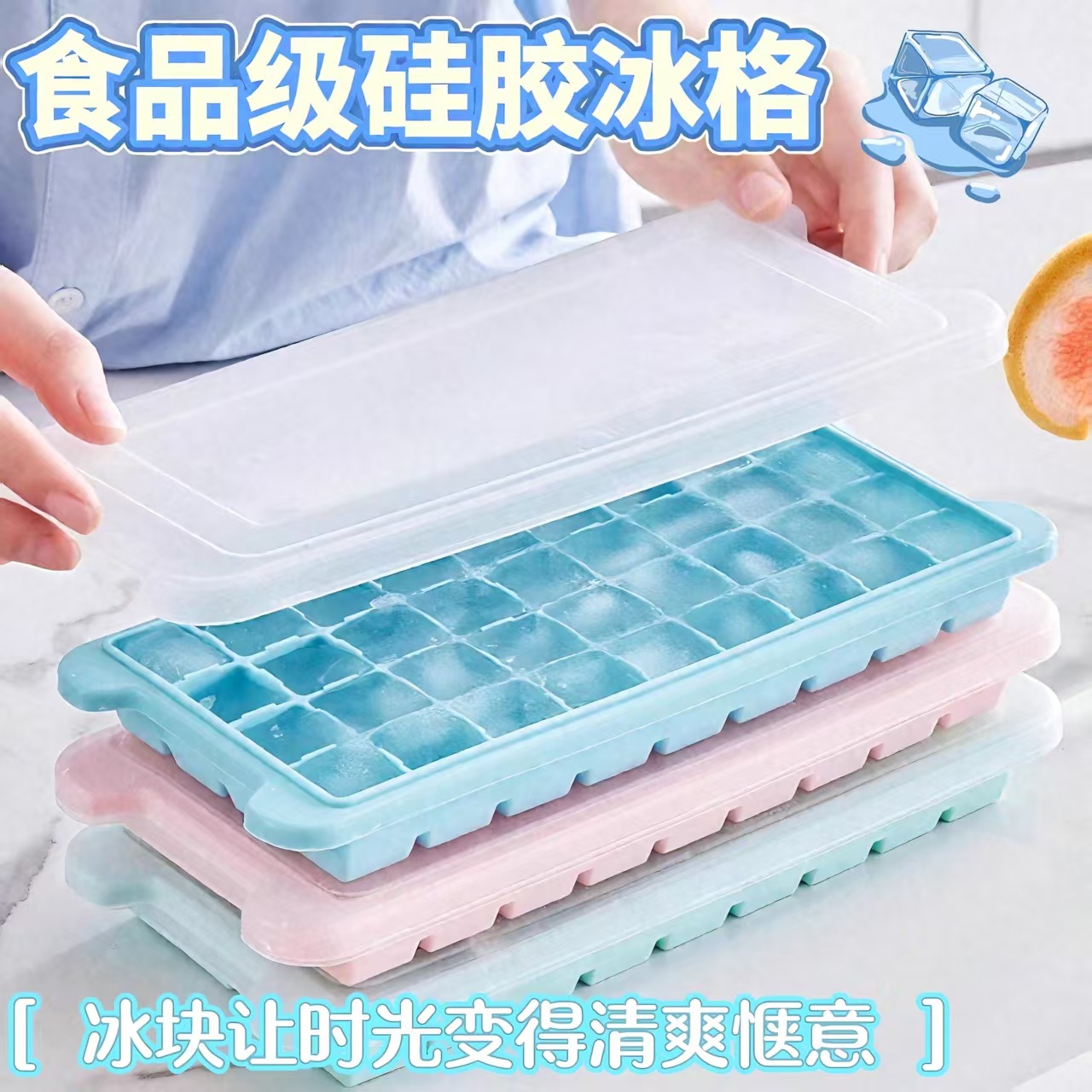 現物シンプル蓋付きシリコン氷金型家庭用冷凍氷格子角型プラスチック製氷金型diy補助食品箱