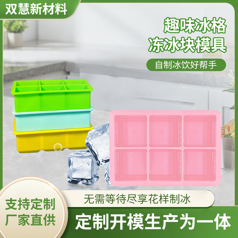 正方形の 6 グリッドシリコン製アイスキューブフィルム、食品グレードの家庭用シリコンソフト底冷蔵庫製氷フィルムプレスアイスキューブ研削ツール
