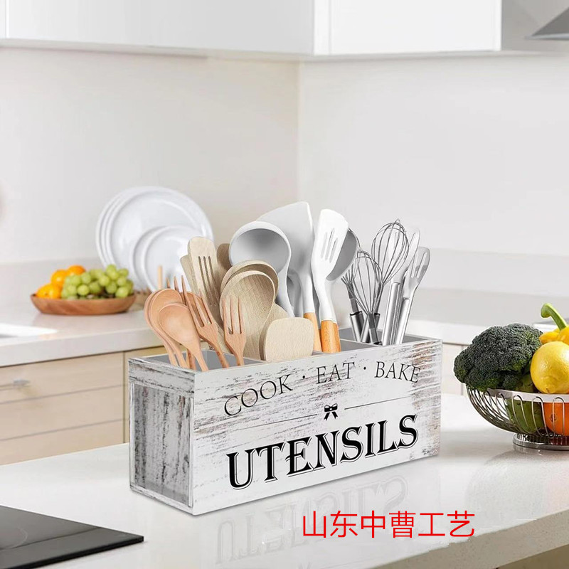 クロスボーダー新作レトロ木製収納ケースホワイト木製収納ケースキッチン多格ナイフとフォーク食器整理ケース