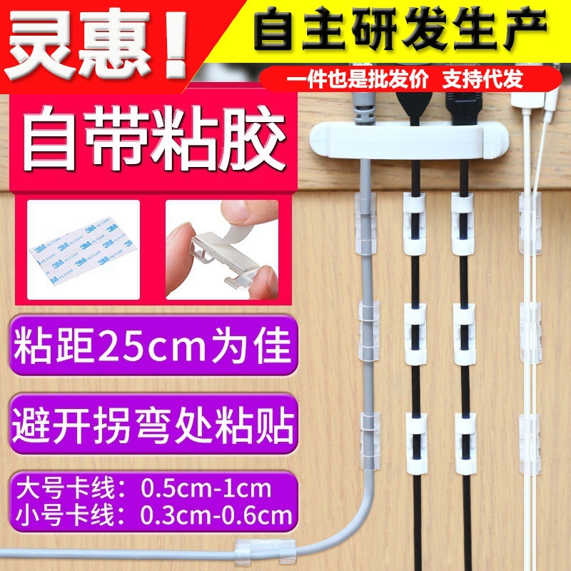 デスクトップデータケーブル収納自粘無痕釘なし理線器固定線クリップ車載電線巻線器固定器