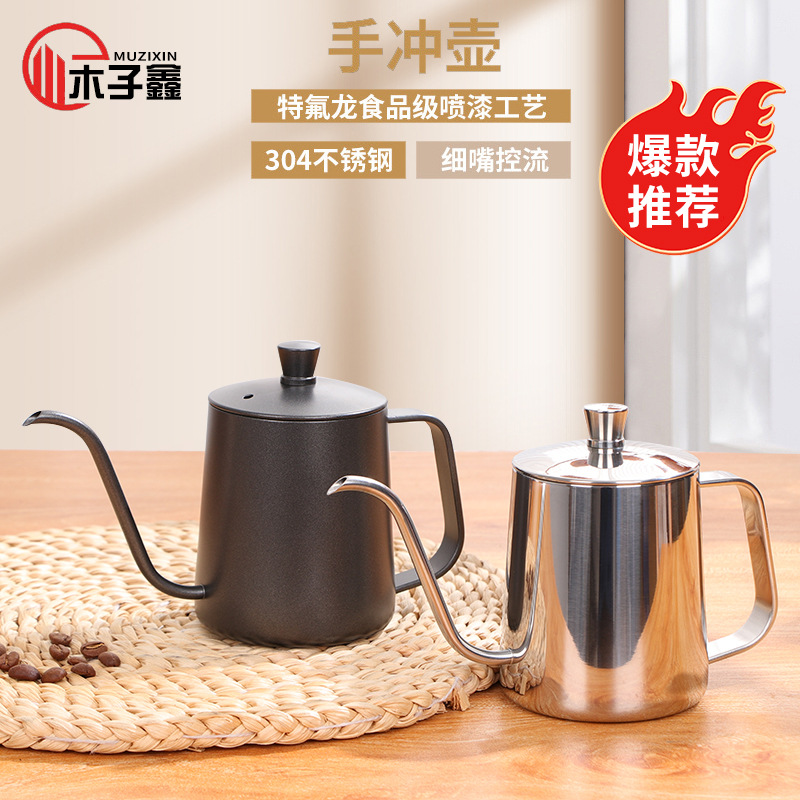 手沖コーヒーポット長口細口ポット家庭用304ステンレス鋼厚手耳コーヒー器具木取っ手屋外