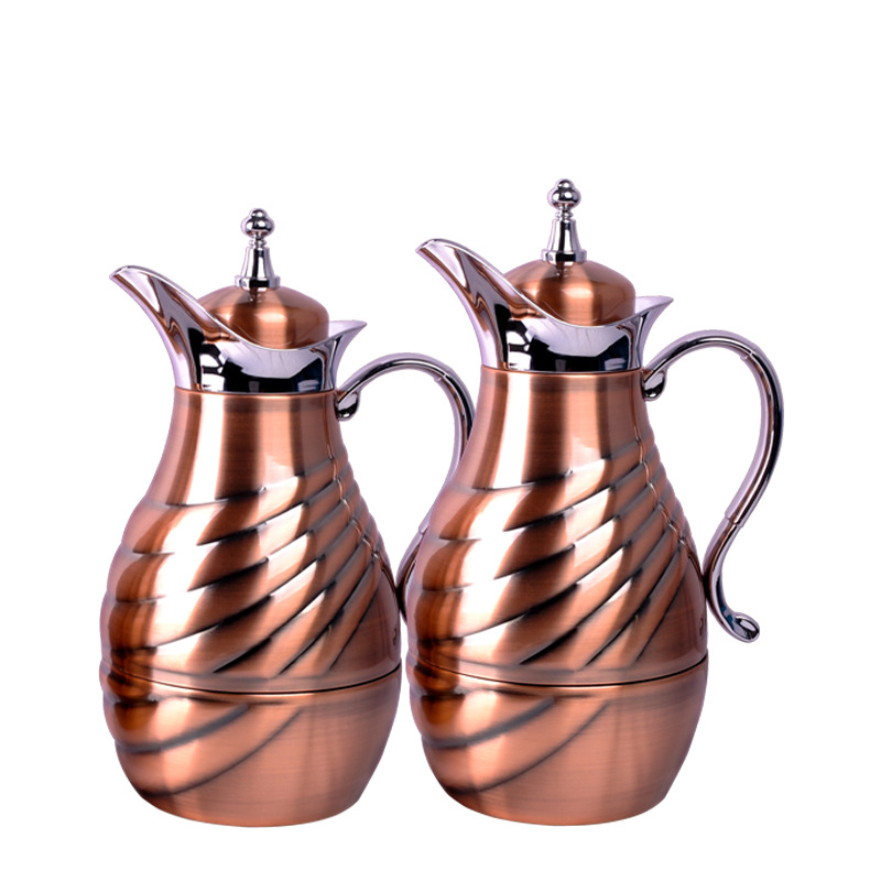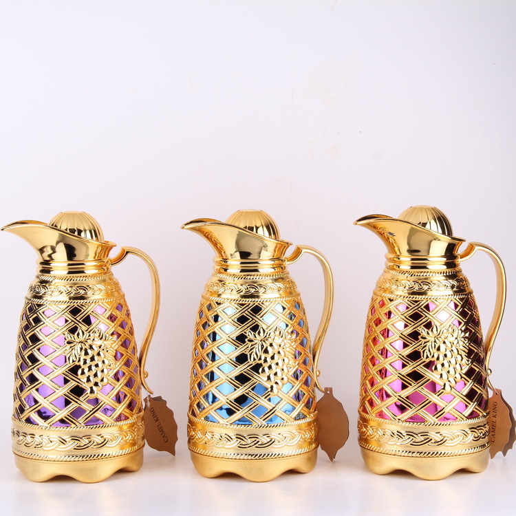 中東異域スタイル特色保温コーヒーポットガラス内胆金属ケース0.7L/1.0L 2点セット