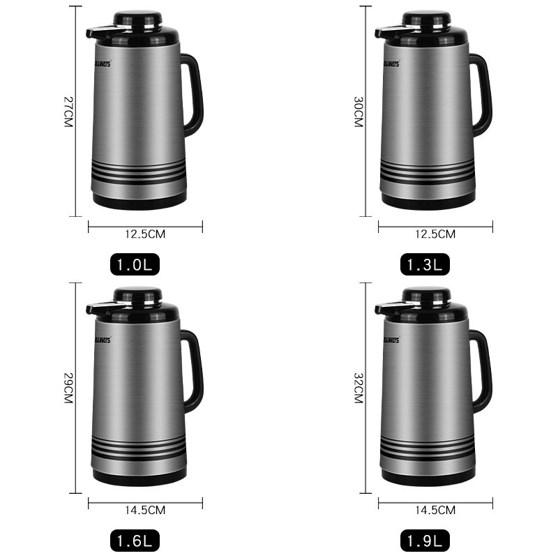 保温ポット1.0lコーヒーポットガラス内胆ステンレスケース家庭用ポット小型大容量