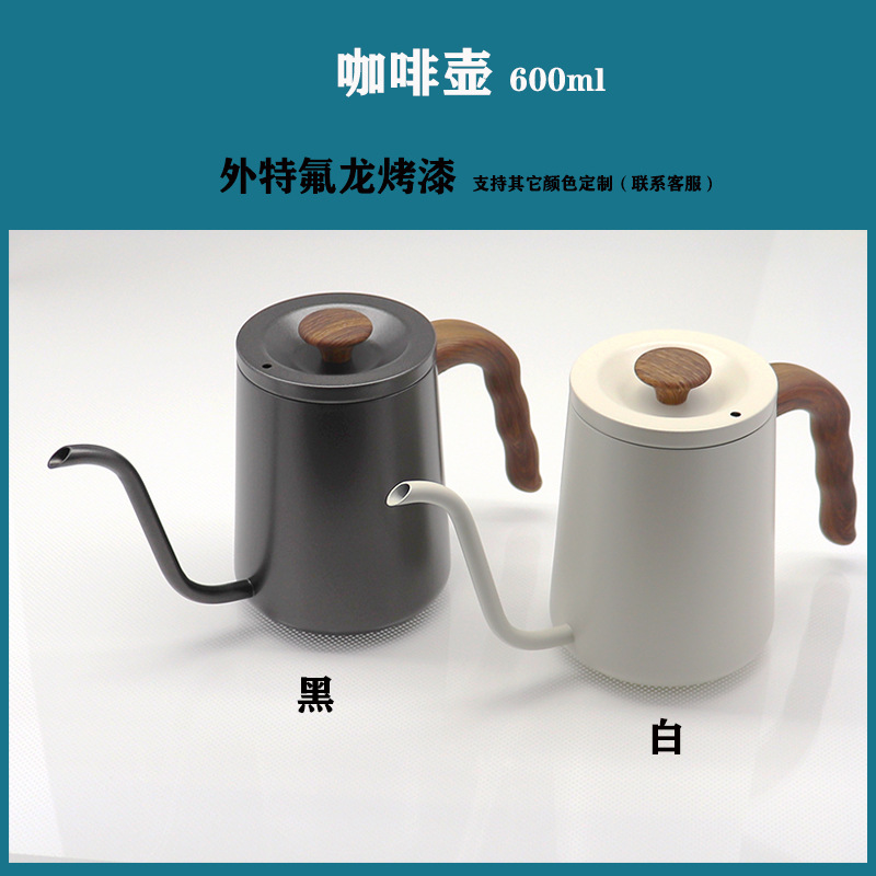 手沖コーヒーポットステンレス手沖ポットスケール付き木ハンドル304テフロン家庭用点滴フィルターポット600ml