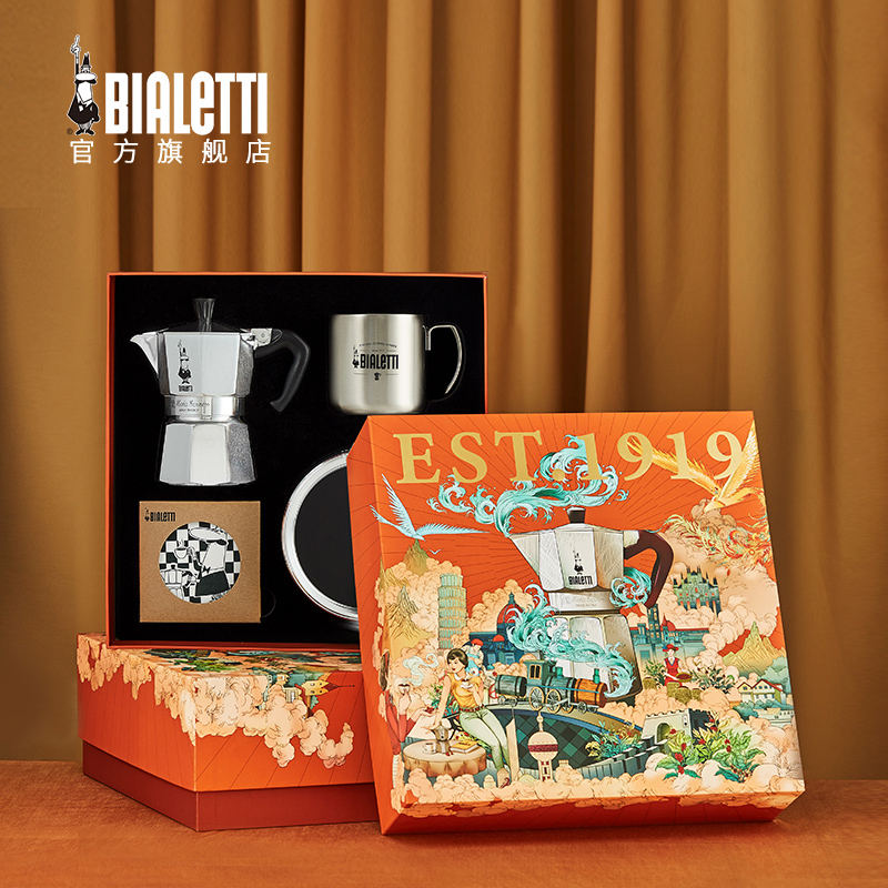 【新年プレゼント】Bialettiビレッティ蒸気時代モカポットギフトボックス手抜きコーヒーポットセット
