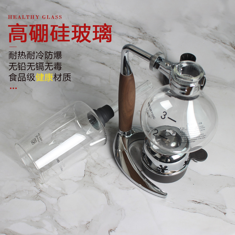 新型サイフォン式コーヒーポットセット煮茶器レトロ木柄手動煮コーヒーマシンガラスサイフォンポットギフトボックス