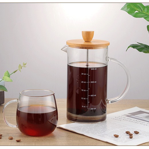 卸売り600ml木蓋フランスコーヒー抽出器高ホウ素シリコンガラス材質は異なる種類の材料が利用できる