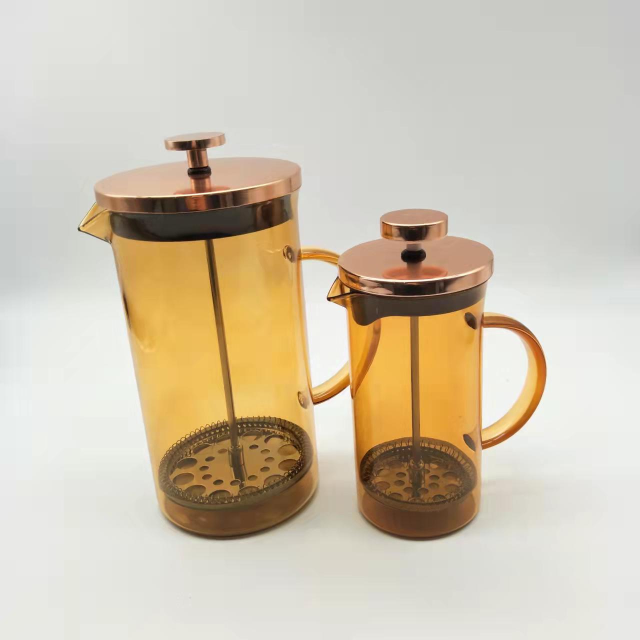 卸売り600mlバラ金押圧式手沖コーヒーポット高ホウ素シリコンガラス材質201研磨フレーム