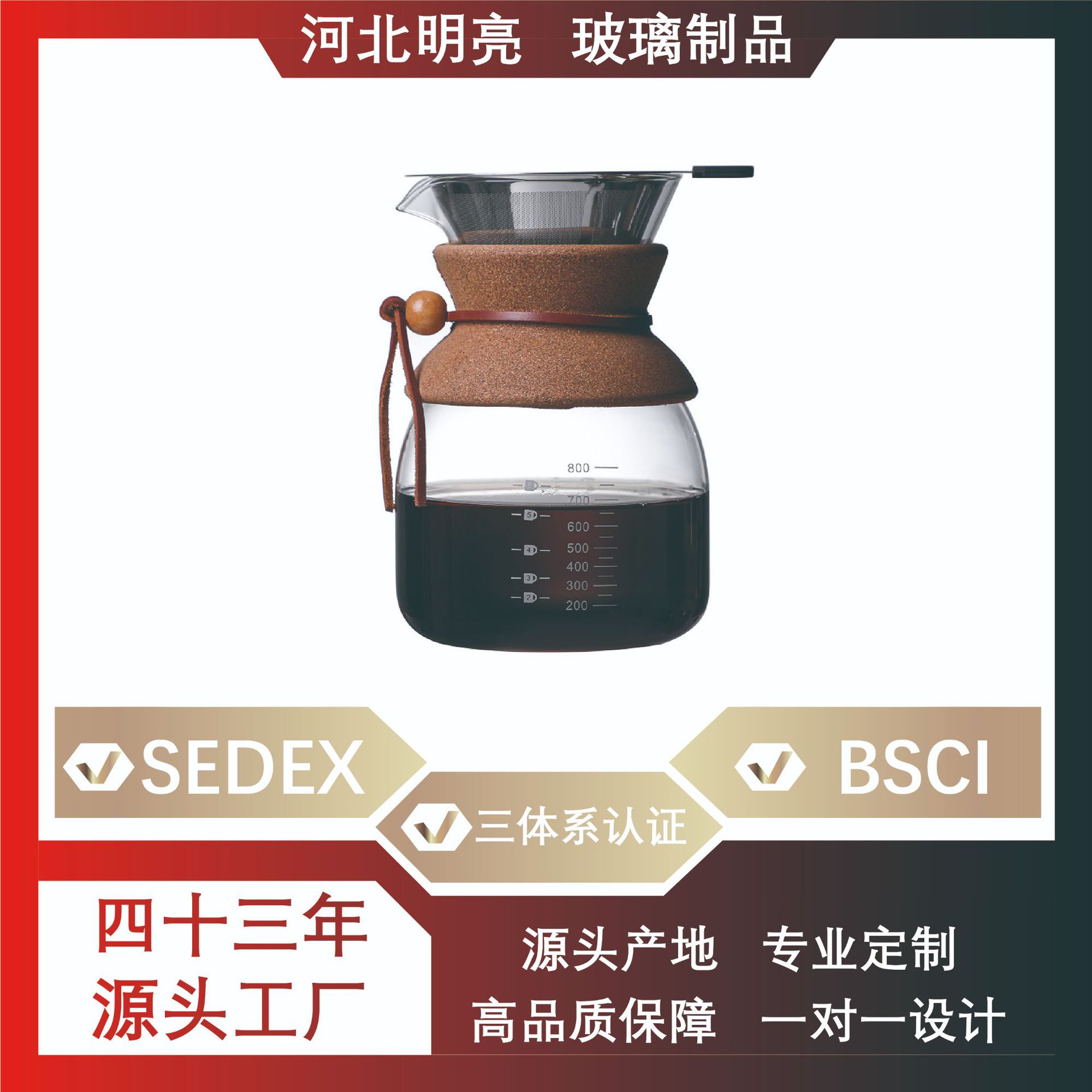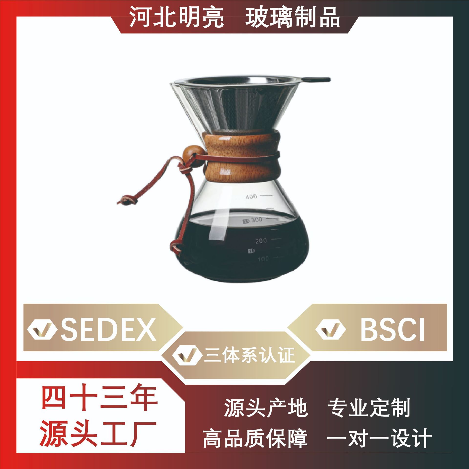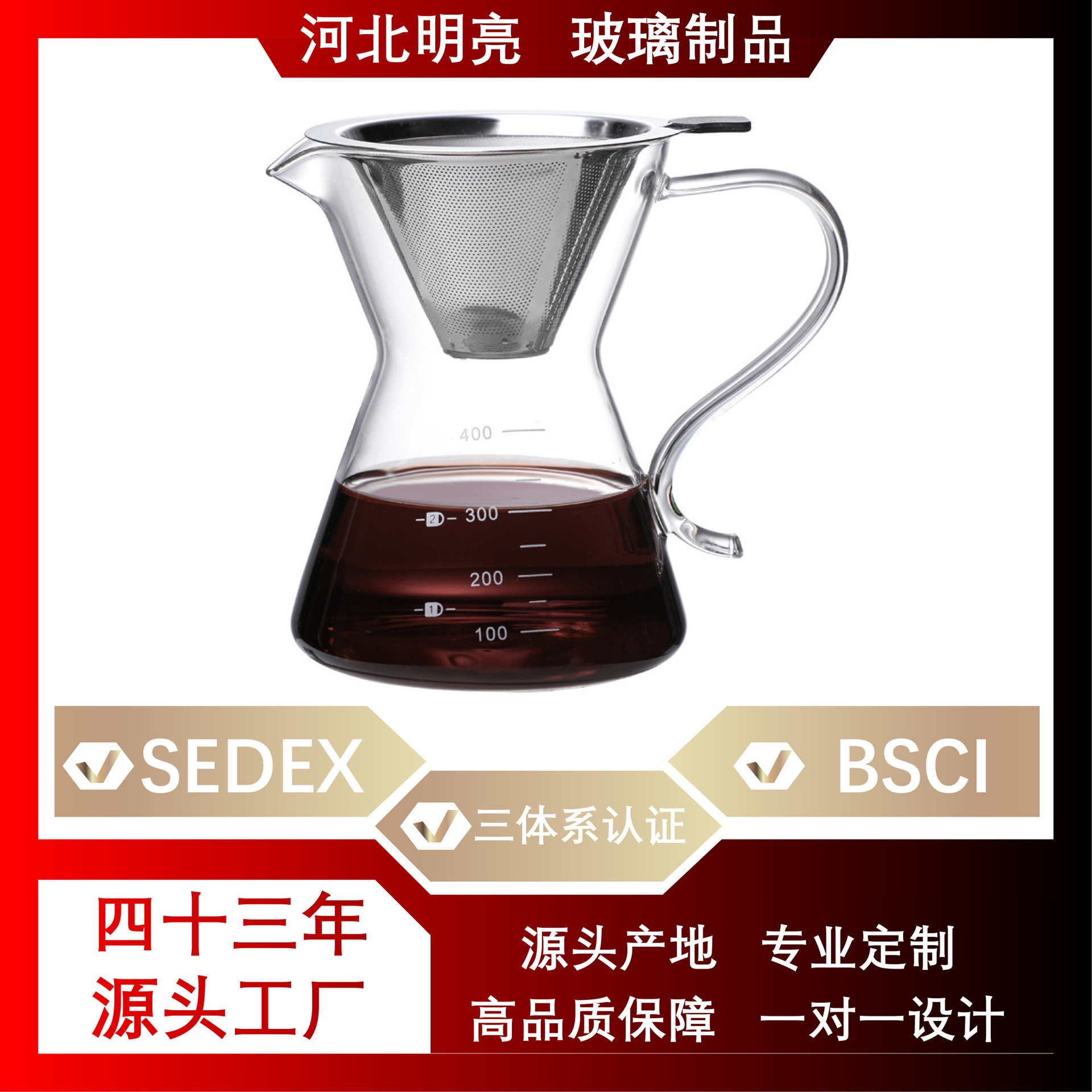 明るいカスタムコーヒー共有ポット高ホウ素シリコンガラス手沖ポットステンレス漏れろ過抽出カスタマイズロゴ