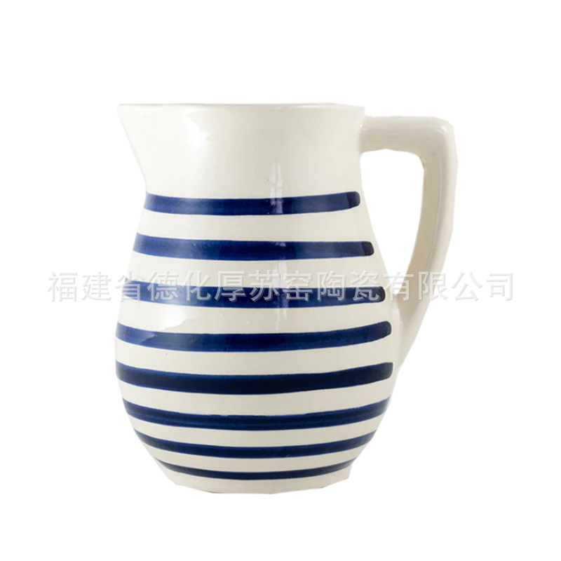 古典的な縞模様の冷たい水筒をカスタマイズして対外貿易陶磁器の青い縞コーヒーポットの青い縞模様のジュースポットを輸出する