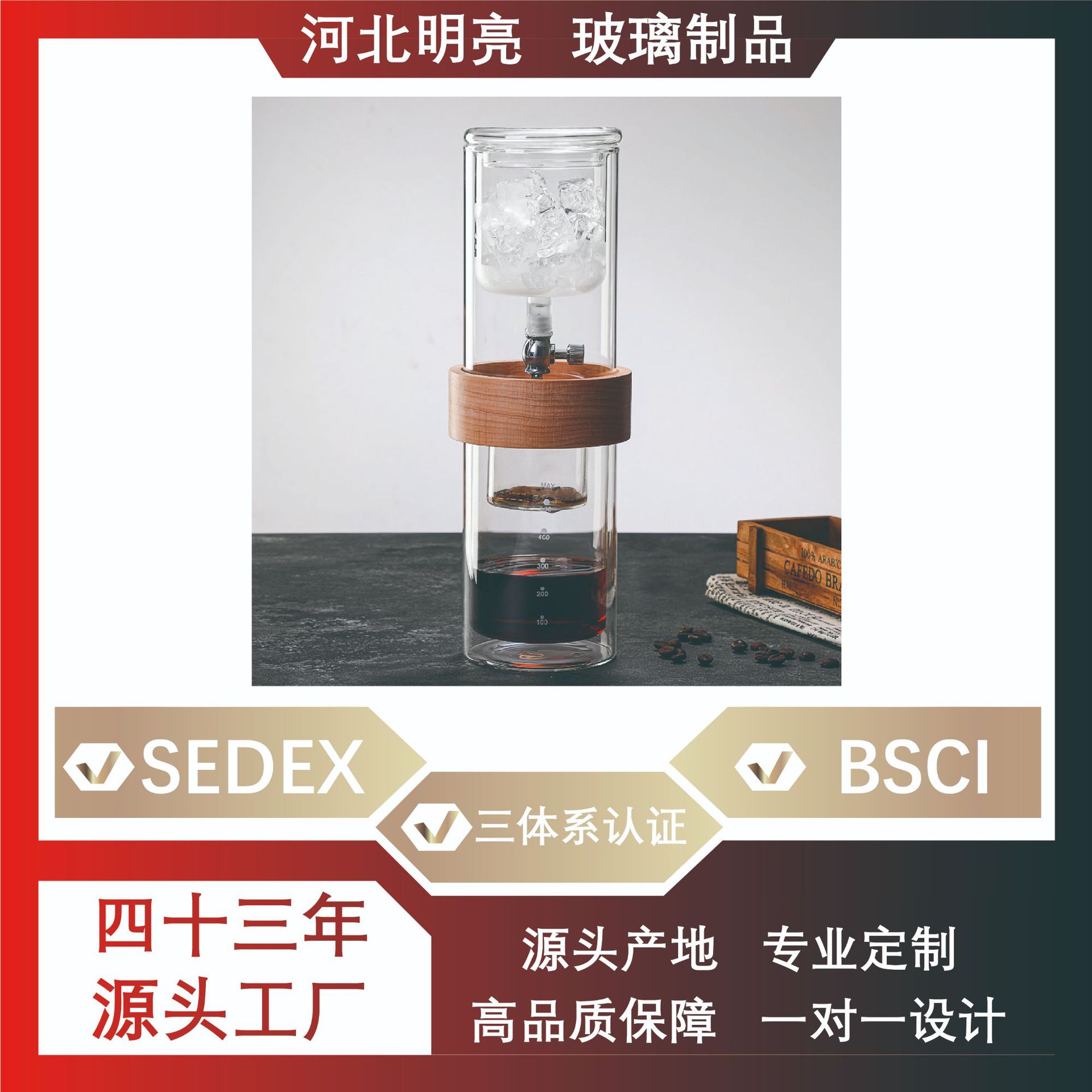明るいカスタムガラスの冷たいコーヒーポットガラスのコーヒーセット二重氷滴コーヒーポットの手でコーヒーポットを流す