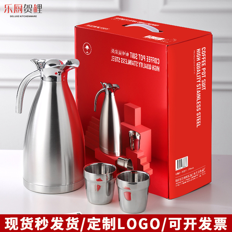 二重ステンレスポット保温ポットセットヨーロッパ式真空コーヒーポット結婚祝い実用ギフトボックスセットポット