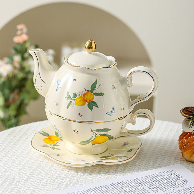 レモンシリーズのフランス式の精巧なコーヒーの午後のお茶の家庭用ティーポットセットの陶磁器のイギリス式の漫画のギフトボックスの卸売り