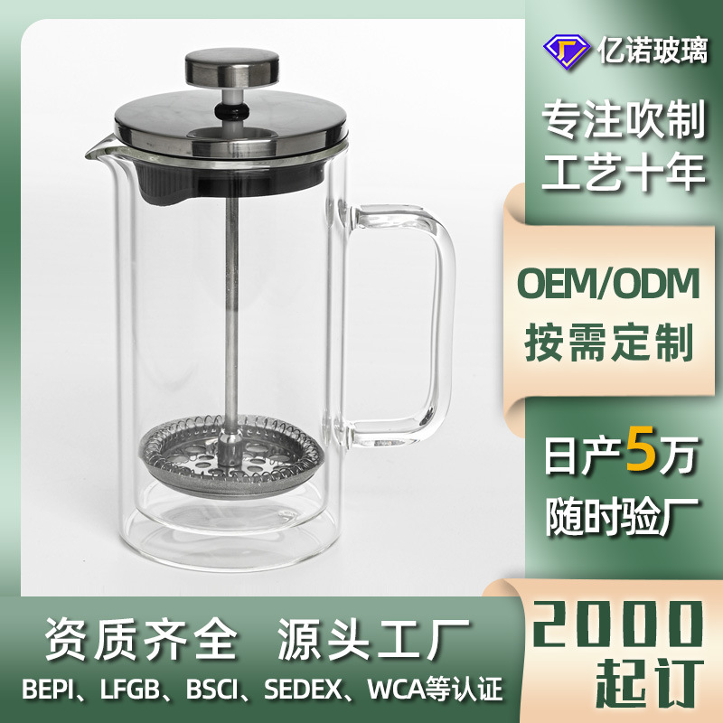 カスタマイズされたガラスフレンチプレスポット断熱コーヒー器具家庭用フィルターシェアリングポット高ホウケイ酸耐熱二重層コーヒーポット