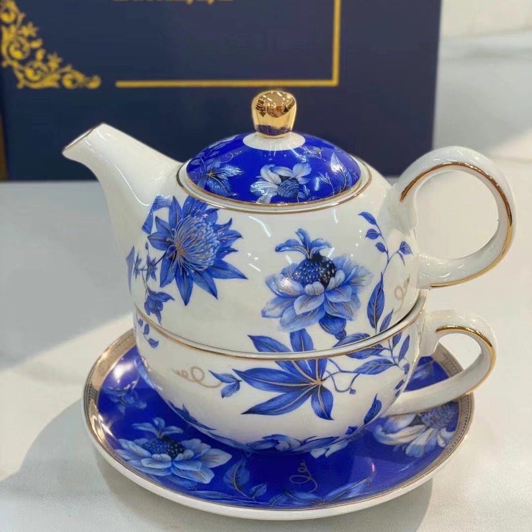 億聯雅英式アフタヌーンティー青芙蓉子母壺コーヒーカップ皿一壺一杯一皿コーヒーボックスセット