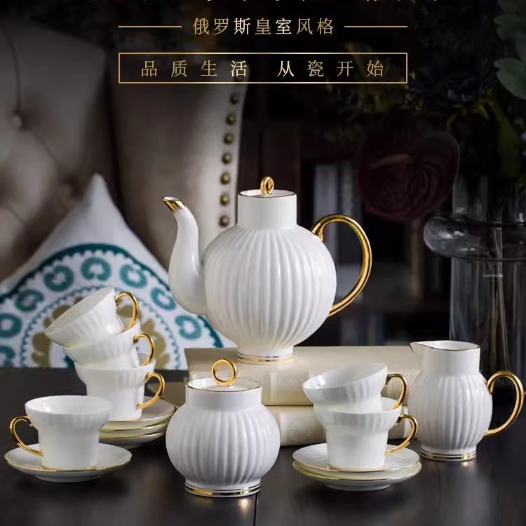高颜値描金ロシア式かぼちゃコーヒーセット15点コーヒーカップ皿ミルク缶ギフトボックスオープン移転プレゼント