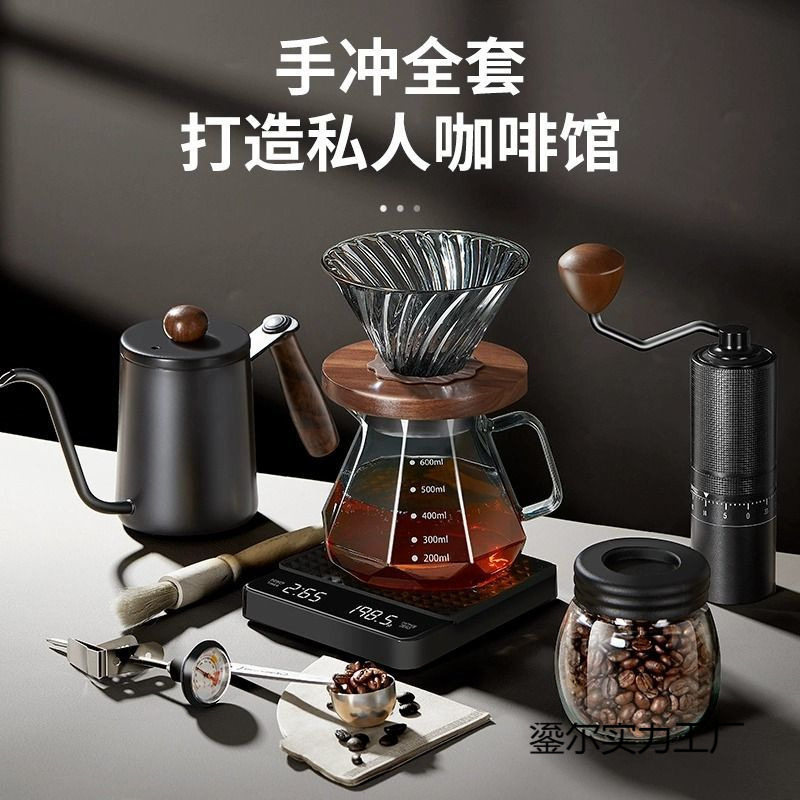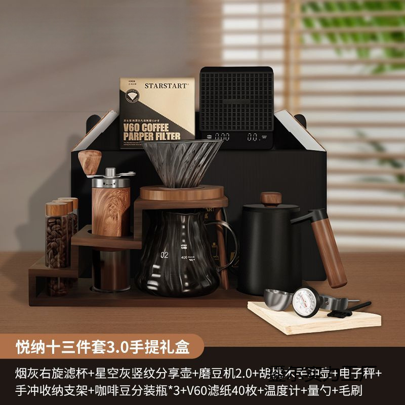 手冲コーヒーセット手磨コーヒーマシンセット木枠高颜値手冲ポットコーヒー器具ギフトボックス