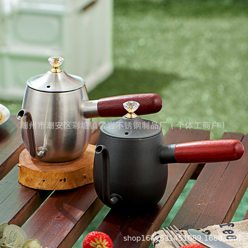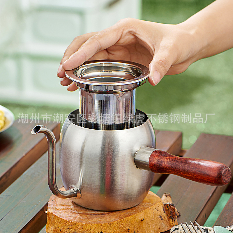 クロスボーダー人気304ステンレスコーヒーポット細長い口家庭用ドリップ木柄屋外ハンドポット源工場