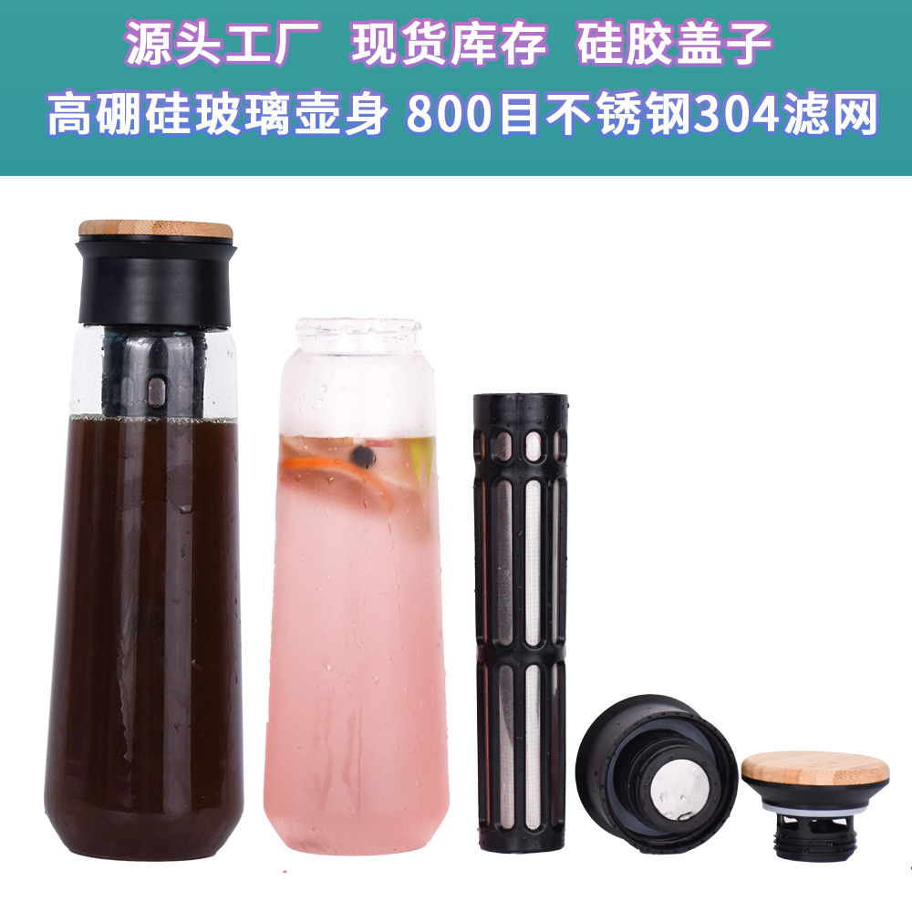 日本の大容量の冷たいコーヒーポットの冷たい泡の杯の高ホウ素のシリコンのグラスの果物のお茶の杯の2層のコーヒーポット
