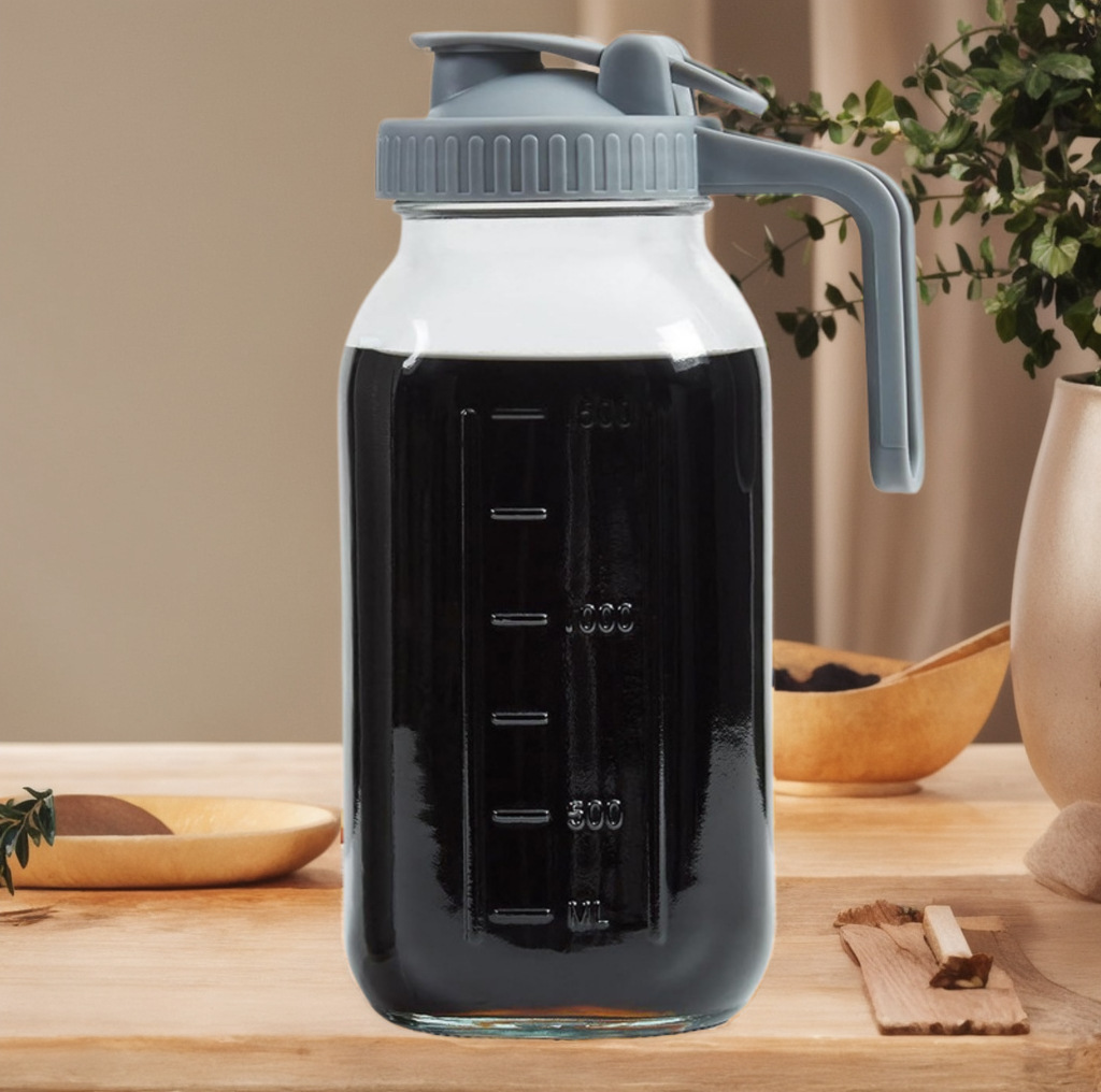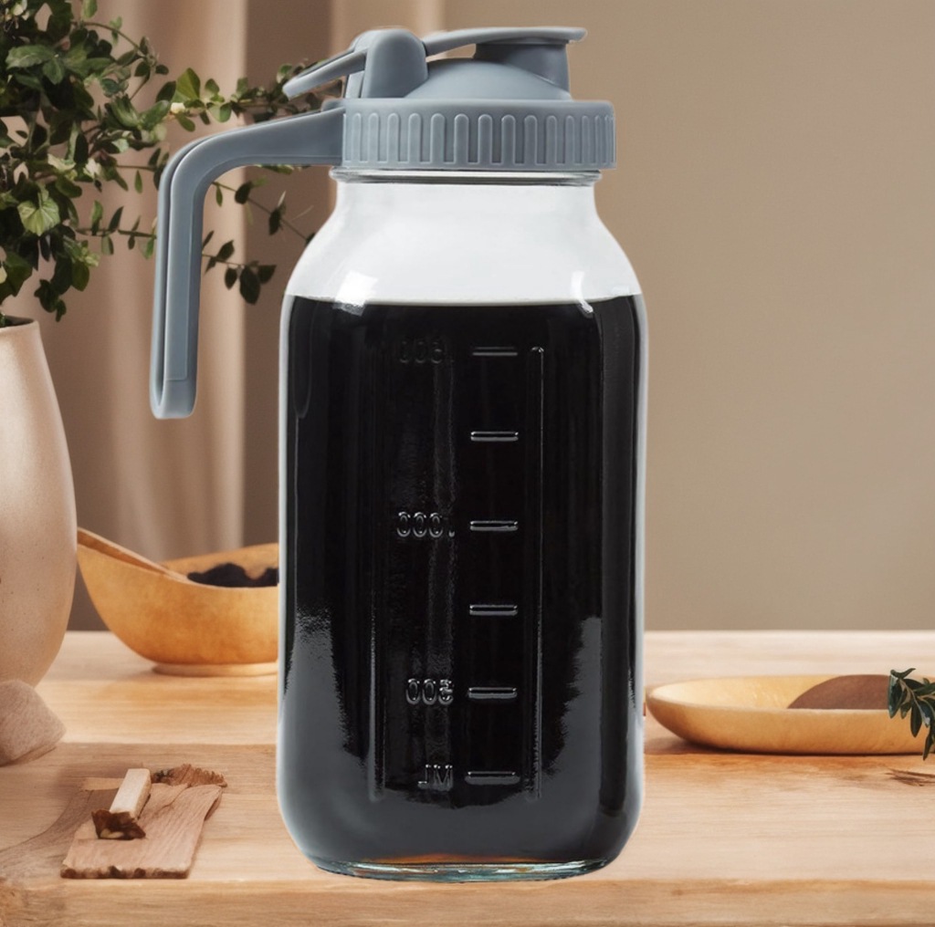 Amazon 32 オンス ガラス ボトル 64 オンス コーヒー フィルター ワイド マウス ハンドル キャップ付きメイソン ジャー コールド ポットを越境直接供給