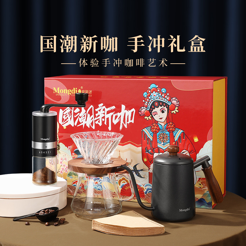 国潮手沖コーヒーポットセットギフトボックス手磨コーヒーセット手沖ポット手磨豆機コーヒー器具