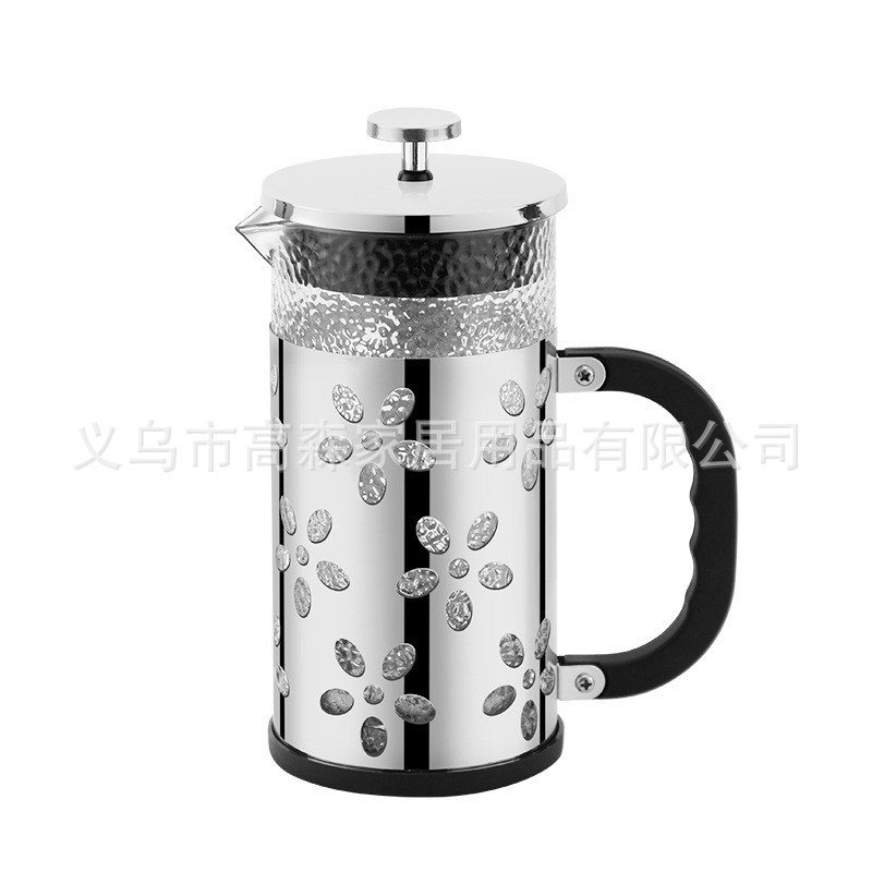 304ステンレスのフランス式の濾過は手を押しのけてコーヒーポットの高ホウ素シリコンのガラスを押しのけて茶器を打ってミルクの泡の現物のカラーの箱を打ちます。