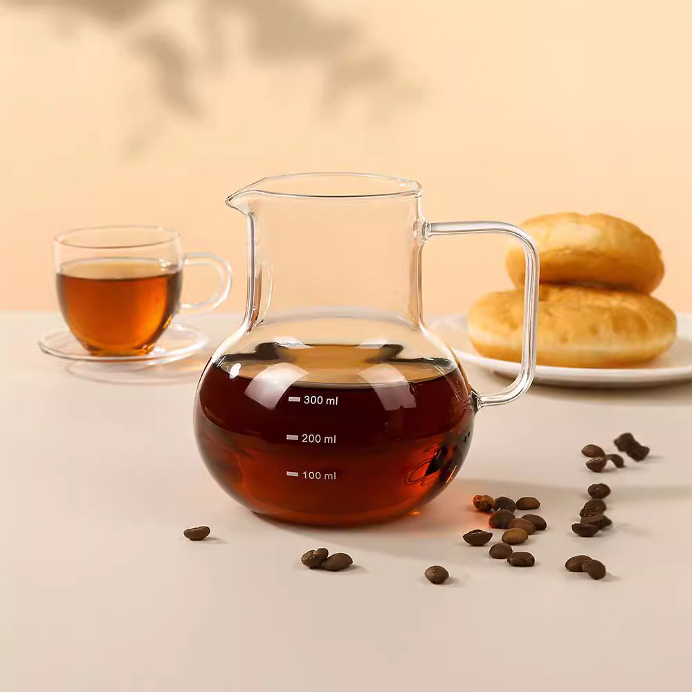 手沖コーヒーポット共有ポット目盛り付き透明帯取っ手付き耳付きコーヒーカップポットセット小大衆家庭用耐熱