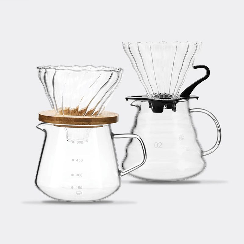 コーヒーポット高ホウ素シリコン耐熱ガラス手沖コーヒーポットモカポット木托ろ過漏斗付き印刷可能