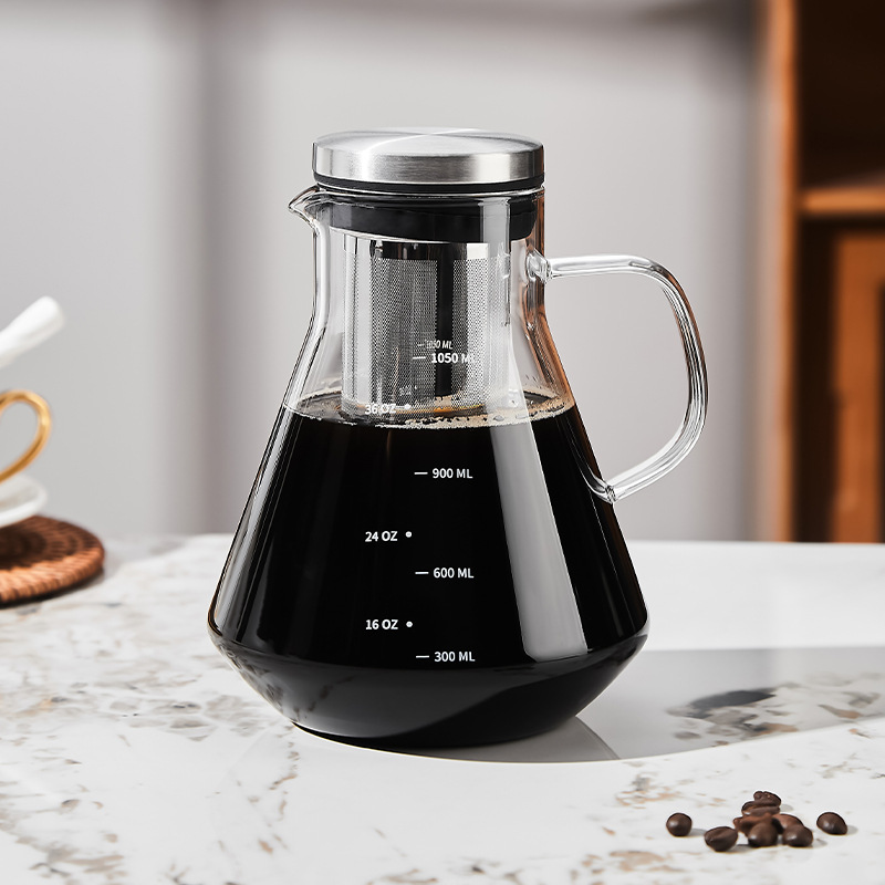 冷たいコーヒーポットのプロ級フィルター付きガラス浸漬ポット冷蔵庫DIY冷たいコーヒーポットの目盛り付き