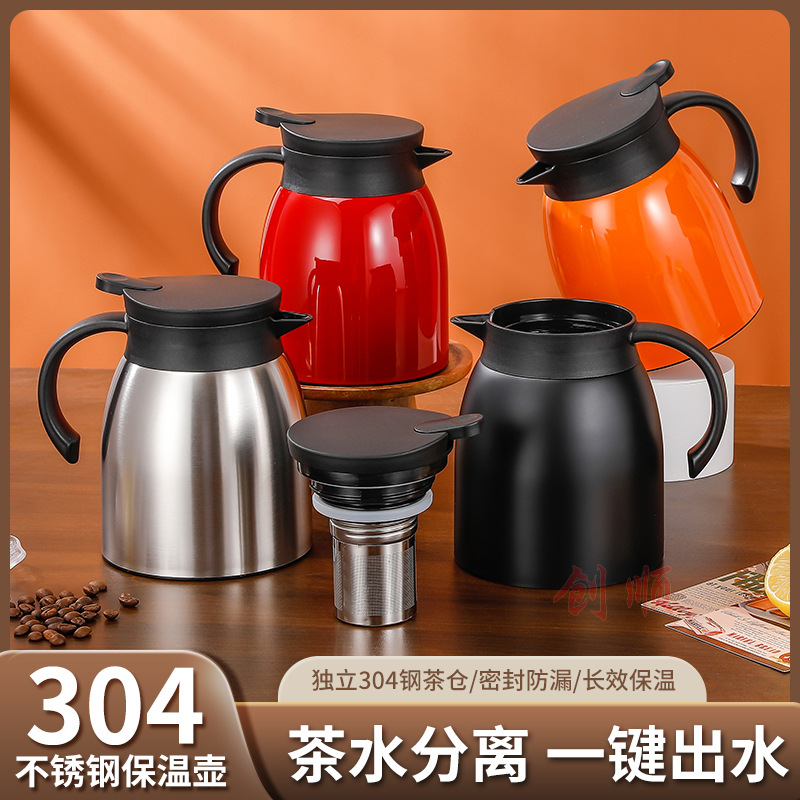 304ステンレス保温ポット茶漏れコーヒーポット付き二重真空ポット1.0L魔法瓶ホテル用品