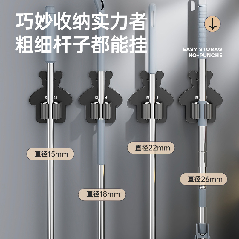 軽豪華モップホルダー家庭用高颜値吸盤壁掛け穴なしベアーモップ掛け棚移動収納棚