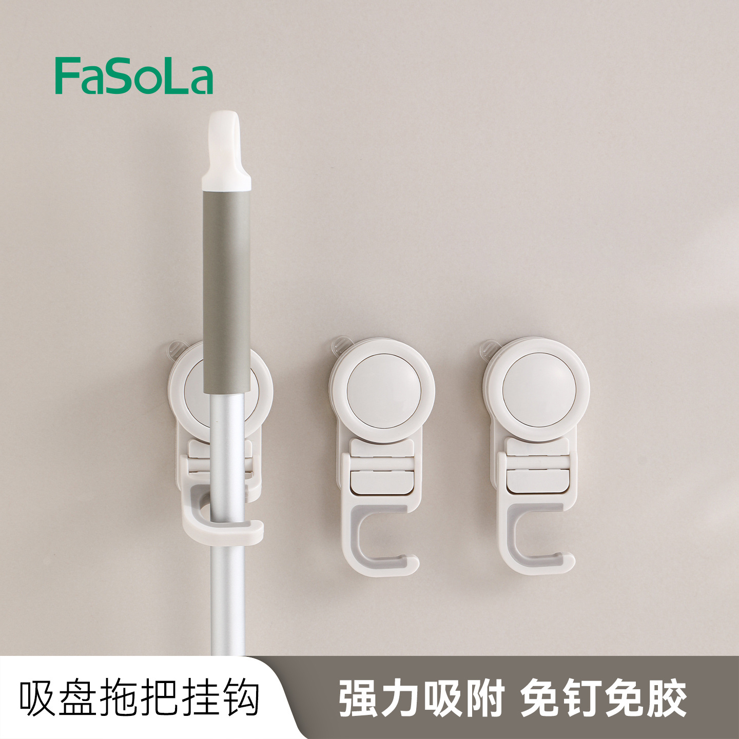 FaSoLa モップクリップ 浴室パンチフリーメトローブフック固定ラック 強力吸盤モップフック