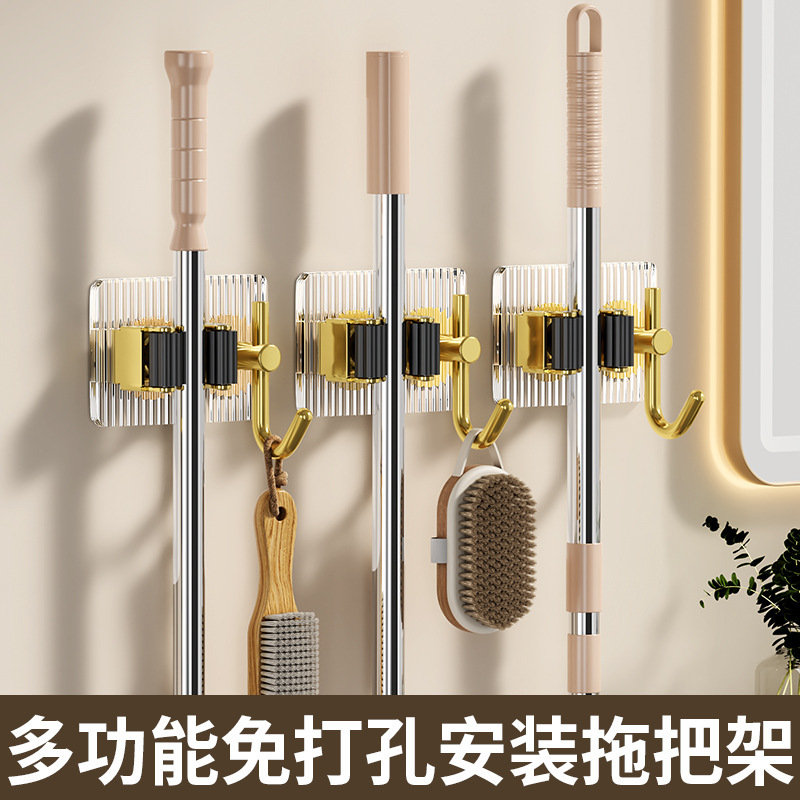 アクリル軽贅沢風モップホルダー穴なし壁掛けモップトイレ収納神器固定クリップ