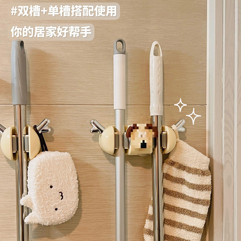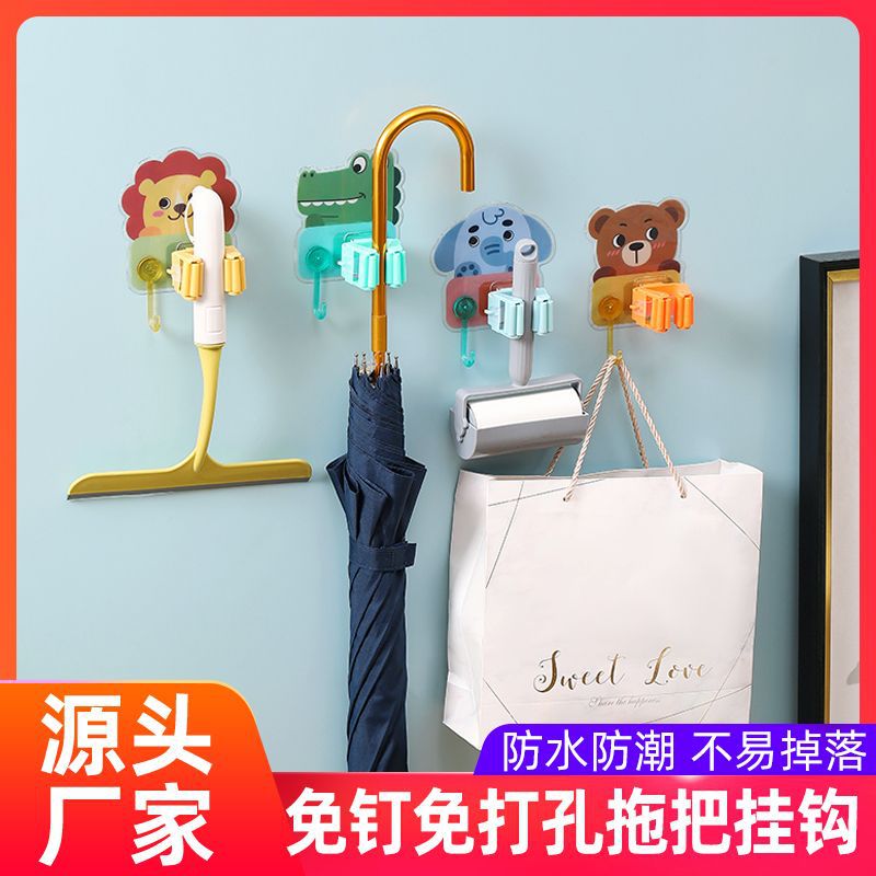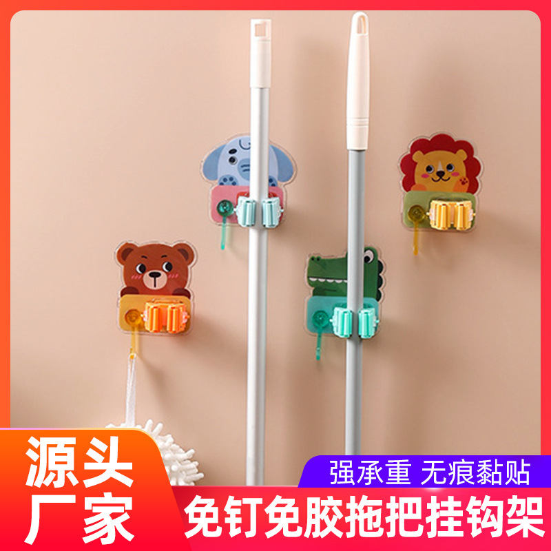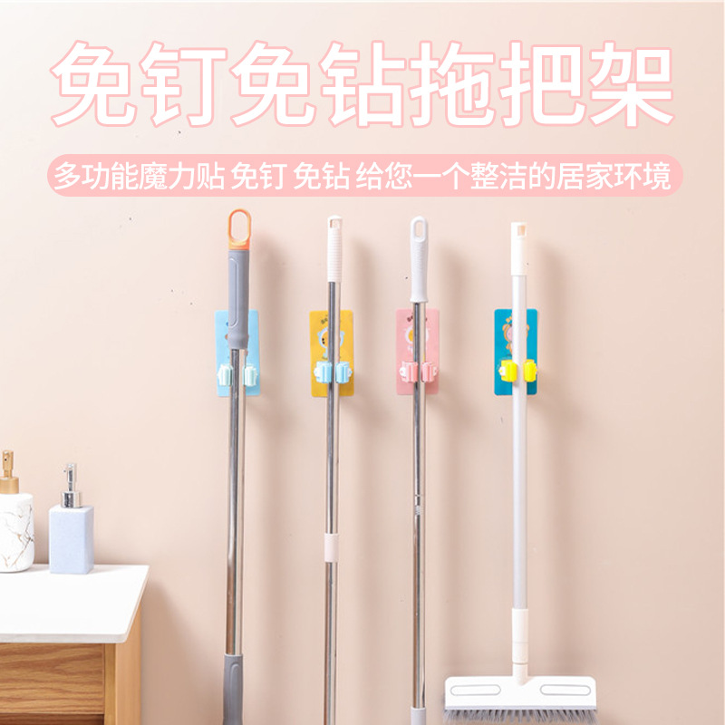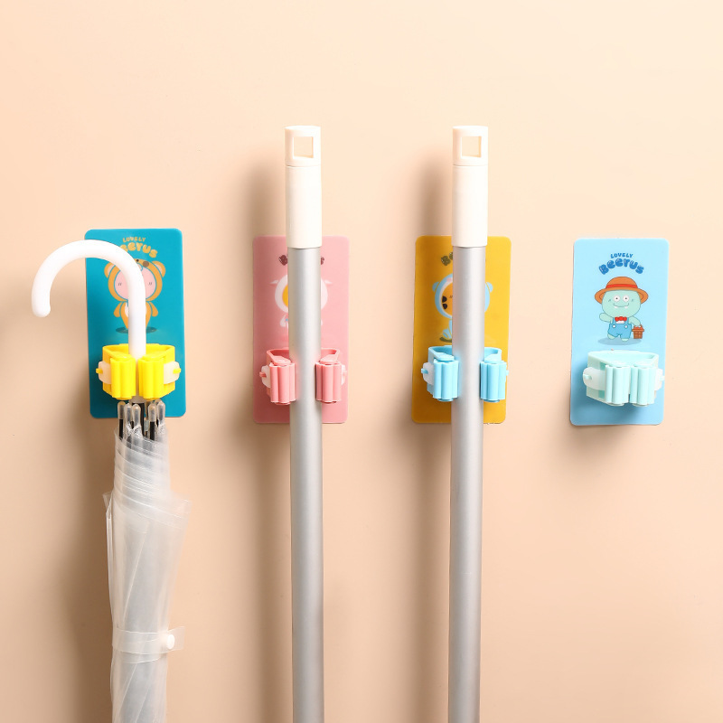 多機能モップクリップ漫画壁掛けデザインパンチフリーフッククリップモップバックル固定クリップ