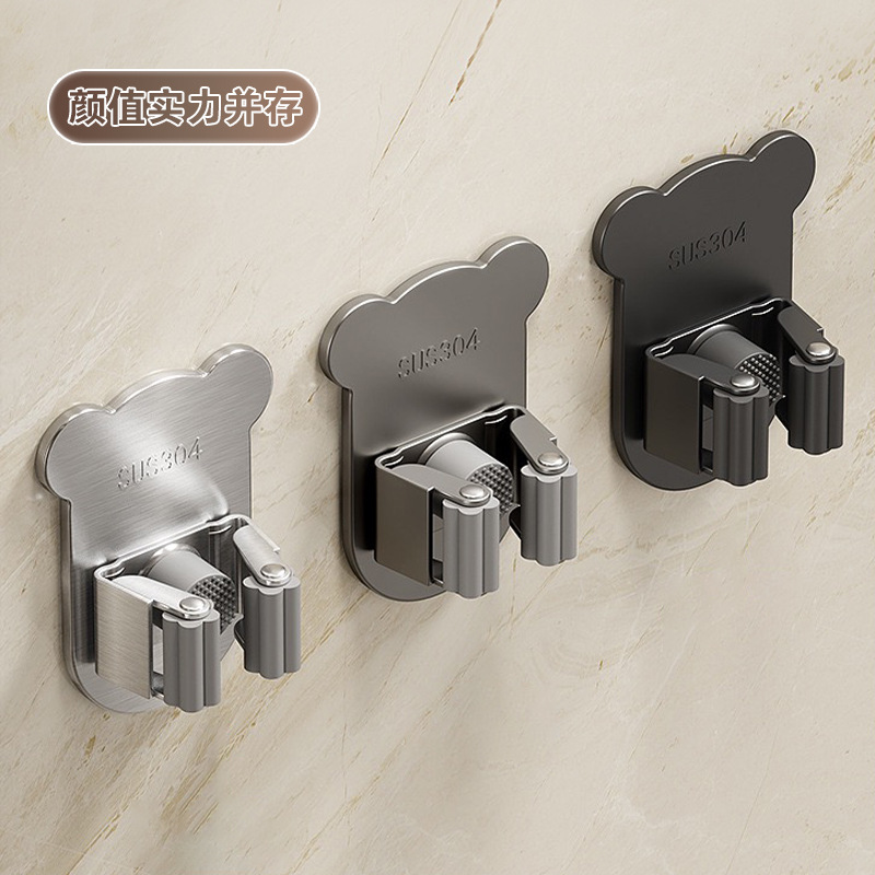 ステンレス鋼モップクリップパンチングなしクマヘッド壁掛けモップラック浴室浴室ほうき収納フックラック