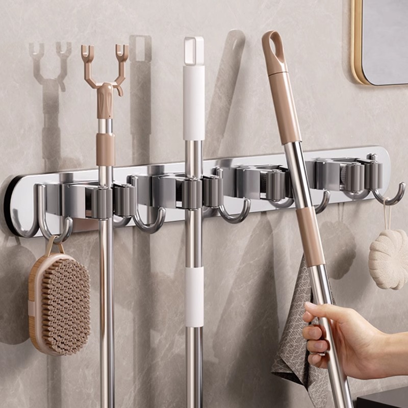 ガンアッシュモップ壁掛けクリップステンレス鋼フックパンチフリー浴室収納アーティファクト多機能ほうき固定ラック
