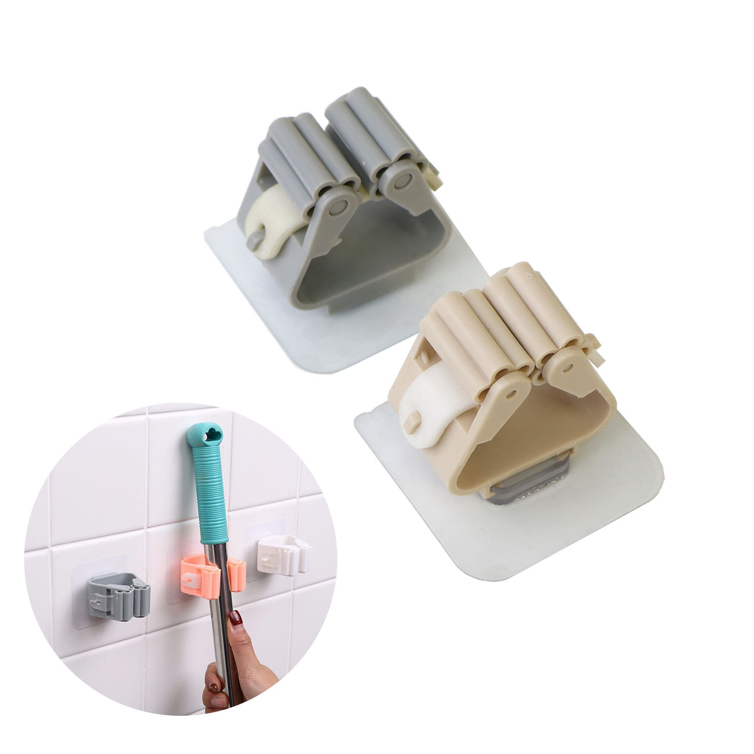 穴あけ不要、跡が残らないモップホルダー、モップフック、浴室用壁掛けほうきハンガー、モップクリップ