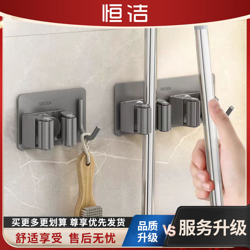 モップフック穴なしトイレ収納神器粘着フック掃除ラック強力粘着テープ壁掛けモップクリップ